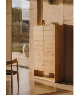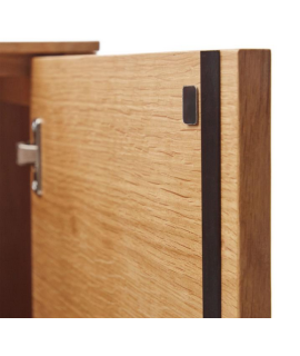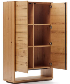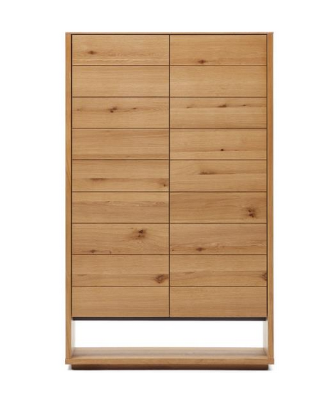 Ligne captivante pour cette armoire élégante et prestigieuse. En placage de chêne naturel, avec 2 portes à ouverture par pression avec fermeture amortie. Un meuble merveilleux, qui transmet la luminosité à l'environnement. Fantaisiste et raffiné, granuleux et dynamique, il mise sur la praticité et un design élégant.