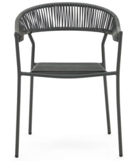 CHARLOTTE Chaise au choix de couleur avec corde et accoudoirs en métal pour terrasses de jardin intérieures et extérieures