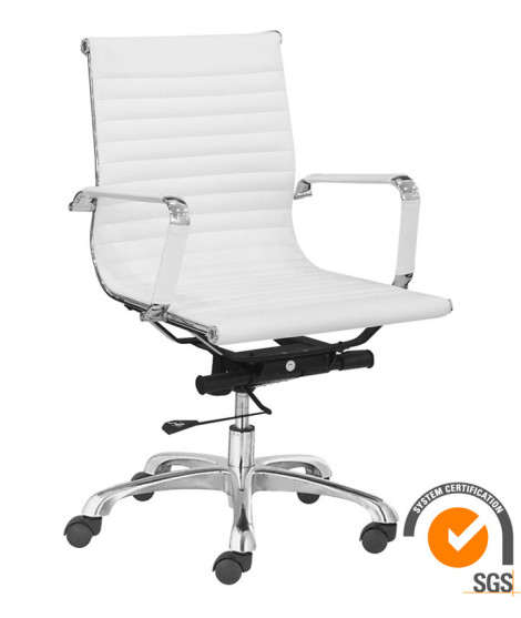 Chaise de bureau confortable. Fabriqué avec une structure pivotante en aluminium et métal chromé avec roues pivotantes et hauteur réglable, coque en éco-cuir blanc ou noir très résistant.