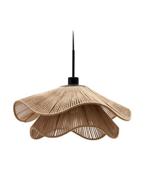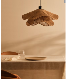 Abat-jour original et particulier pour suspension en métal noir et jute en fibre naturelle tressée à la main. C'est un produit naturel, avec des tons et des textures uniques et irremplaçables, il peut donc y avoir des différences par rapport à la photo, qui rendent ce meuble unique et exclusif. Sur la photo de la fiche technique il y a toutes les mesures. Ci-dessous vous trouverez les autres compléments de la même ligne à assortir.