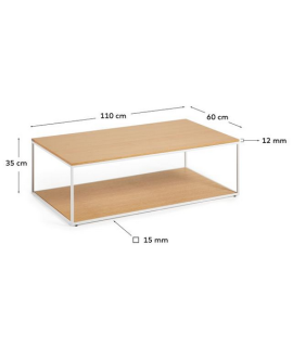 Elégante et au design moderne, une ligne simple qui apporte du raffinement à votre déco. Table basse en placage chêne et structure en métal peint blanc mat et pieds réglables. Sur la photo de la fiche technique il y a toutes les mesures. Vous trouverez ci-dessous tous les compléments de la même ligne.