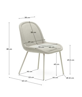 Convient à tout type de meuble. Chaise élégante et raffinée, mais en plus du design, elle est également très confortable avec le dossier enveloppant et l'assise haute. D'un grand prestige et d'une grande solidité, avec un rembourrage en tissu, beige et pieds en métal beige. Capacité maximale 130 kg. Sur la photo de la fiche technique, il y a toutes les mesures. Vous trouverez ci-dessous les tabourets de la même ligne assortis.