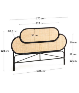 Tête de lit enchanteresse pour lit double, avec structure en rotin tissé à la main. Chaque meuble de cette collection est fait à la main et c'est pour cette raison qu'il s'agit d'une pièce unique et inimitable. Pour des meubles modernes, nordiques, vintage industriels, country ou ethniques. Sur la photo de la fiche technique toutes les mesures.