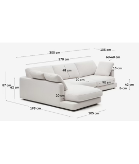 Raffinement, design et élégance, confort et détente, le tout enfermé dans un beau canapé 4 places très confortable avec méridienne. Avec revêtement en chenille de haute qualité et rembourrage effet plume. Les coussins d'assise et de dossier sont en tissu antibactérien avec des housses amovibles et réversibles. Il donne un style prestigieux à vos meubles et vous séduira par son confort sensationnel.
