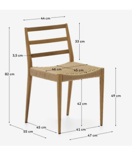 Les chaises en chêne massif ont la particularité d'être très durables et résistantes et de conserver leur beauté inchangée dans le temps. Avec siège confortable en corde très résistante. Une merveilleuse chaise dans la taverne, dans une cuisine rustique ou design, enchanteresse sur la terrasse. Élégance, naturel, design et confort. Capacité maximale de 130 Kg. Toutes les mesures sont indiquées sur la photo de la fiche technique. Ci-dessous vous trouverez d'autres compléments de la même ligne à assortir.