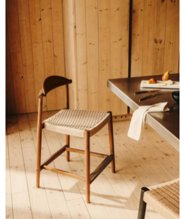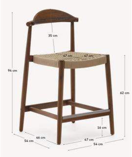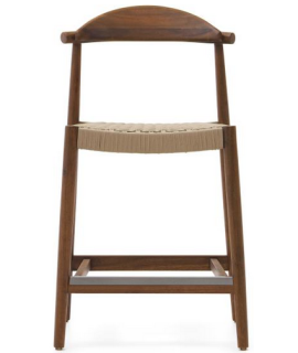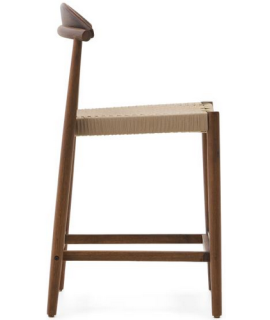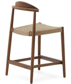 DODI tabouret avec assise h 62 cm en bois d'acacia massif finition noyer et corde beige pour intérieur ou extérieur