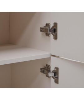 Buffet intrigant et particulier. Fabriqué en MDF laqué blanc, avec 4 portes à ouverture par pression et fermeture amortie, avec pieds réglables en acier peint blanc mat. Vous trouverez ci-dessous les compléments d'une même ligne à assortir. Toutes les mesures sont sur la photo de la fiche technique.