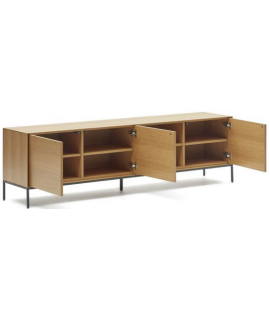 ASTRA buffet ou meuble TV 195x55h cm 3 portes plaqué chêne et pieds acier noir