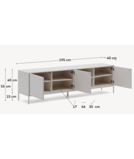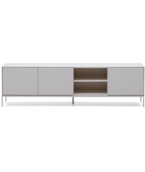 DAMOR buffet ou meuble TV 195x55h cm 3 portes en MDF laqué blanc et pieds en acier blanc