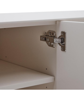 Buffet intrigant et particulier, il sert également de console ou meuble TV. Fabriqué en MDF laqué blanc, avec 3 portes à ouverture par pression et fermeture amortie, avec pieds réglables en acier peint blanc mat. Vous trouverez ci-dessous les compléments d'une même ligne à assortir. Toutes les mesures sont sur la photo de la fiche technique.