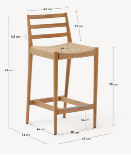 Un tabouret élégant, de style colonial, doté d'un dossier confortable. Fabriqué en bois de chêne massif avec finition naturelle et corde tressée sur l'assise. Il transmet une agréable sensation de confort et de bien-être à l'environnement, grâce également aux matières premières avec lesquelles il est fabriqué qui lui donnent une valeur supplémentaire. Convient pour l'extérieur et l'intérieur.