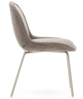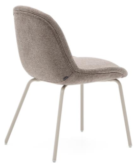Chaise belle et raffinée, une ligne importante qui donne du prestige à vos meubles. Rembourré et tapissé en chenille marron clair et avec pieds en métal peint en beige. Très confortable et élégant, un meuble unique et exclusif.