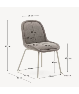 Convient à tout type de meuble. Chaise élégante et raffinée, mais en plus du design, elle est également très confortable avec le dossier enveloppant et l'assise haute. D'un grand prestige et d'une grande solidité, avec un rembourrage en chenille marron clair et pieds en métal beige. Capacité maximale 130 kg. Sur la photo de la fiche technique, il y a toutes les mesures. Vous trouverez ci-dessous les tabourets de la même ligne assortis.