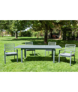 Une table extensible au design frais et moderne, adaptée à l'intérieur ou à l'extérieur. Confortable avec un grand plateau pour accueillir de nombreux convives, pratique et très résistant, en aluminium blanc, anthracite ou gris tourterelle. Disponible en deux tailles. Une ligne simple qui apporte du raffinement à votre environnement, parfaite pour les jardins ou les terrasses, mais aussi les hôtels et les stations balnéaires, grâce à sa haute résistance.