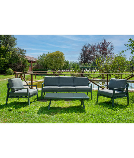 DEDALO ensemble de salon en aluminium anthracite et coussins gris pour jardin ou terrasse