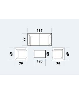 L'ensemble de salon se compose de : 2 fauteuils, 1 canapé 3 places et 1 table basse. Avec structure en aluminium thermolaqué anthracite et coussins en tissu gris déperlant. Idéal pour une utilisation en extérieur car les matériaux résistent aux intempéries et aux rayons UV. Entièrement amovible et lavable. La ligne essentielle et carrée est adoucie par les coussins d'assise et de dossier confortables.