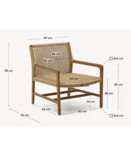 Fabuleuse chaise avec accoudoirs avec structure en bois de teck massif, finition naturelle, traitée avec de l'huile PNZ pour une longue durée de vie et une protection UV et une corde en polyester tissée à la main, résistante aux rayons UV et aux intempéries. Chaque pièce allie la noblesse du bois de teck massif à une finition brossée, qui met en valeur ses tons naturels et son grain unique, rendant chaque pièce différente de l'autre. Charge maximale 120 kg. Sur la photo de la fiche technique, en faisant défiler avec les flèches, il y a toutes les mesures. Ci-dessous les compléments de la même ligne.