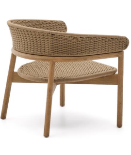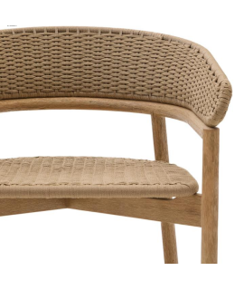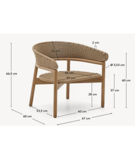 Fabuleuse fauteuil avec structure en bois d'acacia massif, finition naturelle, traitée avec de l'huile PNZ pour une longue durée de vie et une protection UV et une corde en polyester tissée à la main, résistante aux rayons UV et aux intempéries. Chaque pièce allie la noblesse du bois d'acacia massif à une finition brossée, qui met en valeur ses tons naturels et son grain unique, rendant chaque pièce différente de l'autre. Charge maximale 130 kg. Sur la photo de la fiche technique, en faisant défiler avec les flèches, il y a toutes les mesures. Ci-dessous les compléments de la même ligne.