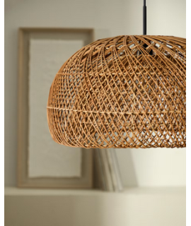 Une abat-jour pour lampe à suspension particulière au goût ethnique, un meuble en fibre naturelle. Un genre raffiné avec un design et un caractère forts. Un charmant style rustique colonial. Ci-dessous vous trouverez l'accessoire de support pour l'abat-jour.