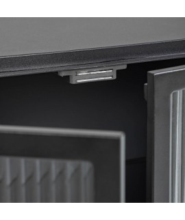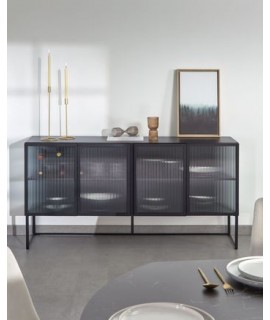 Un meuble vraiment polyvalent, en métal peint noir et détails en verre trempé, il convient à la maison ou au contrat. Confortable et spacieux avec des étagères. Meuble essentiel et particulier, il meuble avec goût et s'accorde bien sur un mobilier moderne, nordique, urbain ou vintage. Sur ACCESSOIRES, les compléments correspondent à partir de la même ligne.
