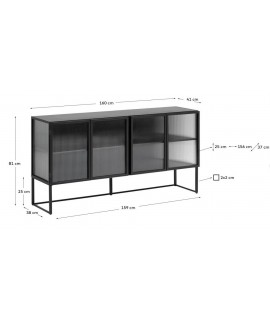 LEE Buffet 160 cm en métal noir et verre trempé
