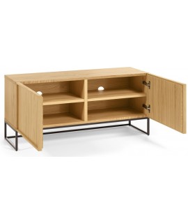 Buffet ou meuble TV essentiel et petit, mais sans sacrifier la fonctionnalité et la surface de rangement. La ligne épurée et le naturel du bois renforcent un design minimaliste et un look sobre et dynamique. Fabriqué en bois de chêne, avec deux portes et un cadre en relief agréable qui le souligne. Structure solide et robuste.