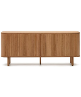 BELAMO buffet 180x75h cm avec 2 portes coulissantes en placage frêne finition naturelle avec effet lattes