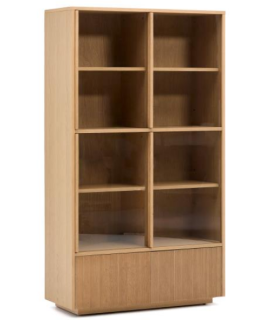 GERUSAL Vitrine 100x174h cm avec portes coulissantes en verre trempé et placage chêne