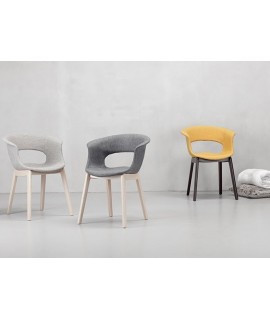 Fauteuil avec coque rembourrée et noyau en technopolymère, à partir d'aujourd'hui a un nouveau cadre entièrement en bois de hêtre massif naturel ou teinté wengé. Rembourrage en tissu prestigieux dans les couleurs: jaune safran, corde, gris et vert paon. SCAB Design présente Natural Miss B Pop. Fauteuil qui se prête à des jeux amusants de personnalisation apprécié dans le contrat: le rembourrage est réservé à une gamme infinie de couleurs, tandis que le cadre en bois de hêtre massif est disponible en finition naturelle ou wengé.