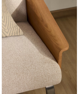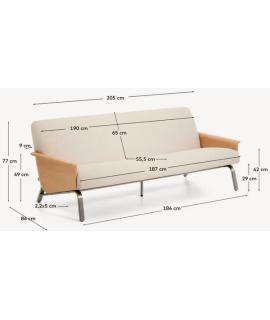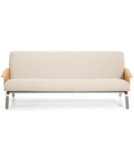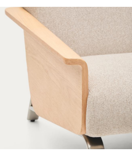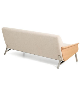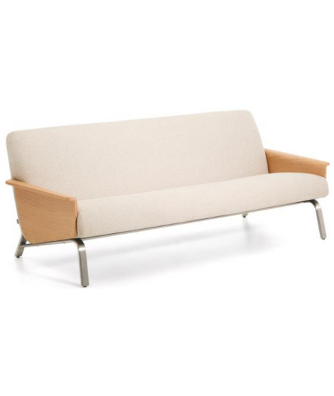 COSENZA Canapé 3 places en chenille hydrofuge avec accoudoirs en placage de chêne et pieds en acier inoxydable brossé