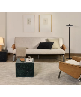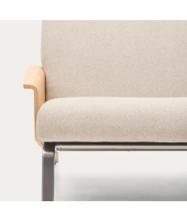 Canapé à l'assise moyenne confortable grâce à un mélange de sangles, de ressorts et de couches de mousse polyuréthane haute densité. Revêtement en tissu recyclé provenant d'un fournisseur certifié, garantissant une utilisation réduite des ressources et des matières vierges, et certifié pour une production sûre et respectueuse de l'environnement, en chenille hydrofuge. Les accoudoirs sont en placage de chêne issu d'une exploitation forestière contrôlée, et les pieds sont en acier inoxydable brossé. Ce modèle élégant et moderne est idéal pour meubler votre intérieur avec un style années 50 et un design raffiné. Charge maximale : 300 kg. La photo dans les spécifications techniques présente toutes les dimensions.