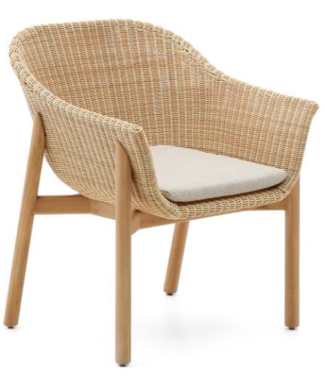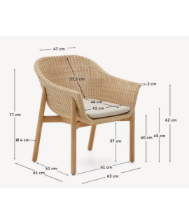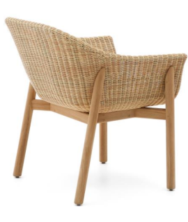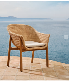 DONALD chaise avec accoudoirs en bois de teck massif et rotin synthétique et coussin amovible pour l'intérieur et l'extérieur