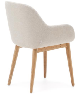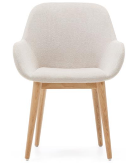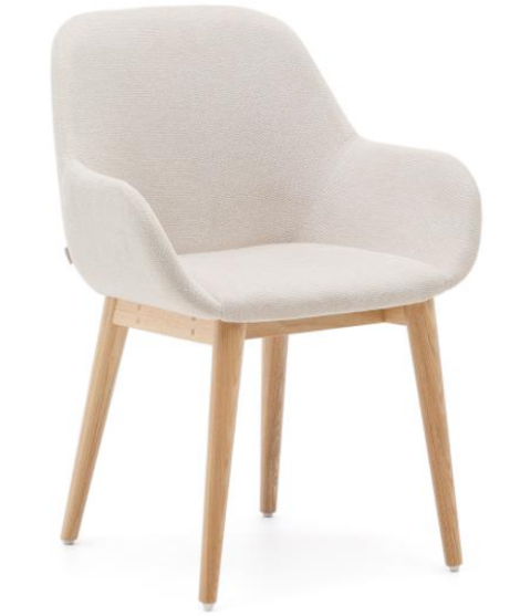 CHIMA chaise avec accoudoirs en tissu effet chenille crème et pieds en frêne naturel fauteuil design maison