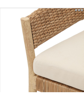 Fabuleux ensemble de 2 fauteuils et un canapé 2 places au goût exotique, avec structure en bois d'eucalyptus massif et rotin synthétique tissé à la main avec une finition naturelle et des coussins confortables déhoussables en tissu hydrofuge. Un salon quatre saisons, charmant et chaleureux devant le foyer l'hiver et merveilleux l'été, à savourer dans le jardin ou sur la terrasse. Confortable et raffiné.