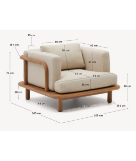 Style campagnard fascinant et élégant pour ce fauteuil avec structure en bois de teck massif et avec des coussins confortables inclus, en tissu hydrofuge et avec des housses amovibles, pour assurer un confort supplémentaire. Confortable et agréable. Idéal à combiner avec les autres accessoires de la même ligne, pour meubler avec style l'intérieur et l'extérieur. Merveilleux pour la maison ou les hôtels, b & b, fermes.