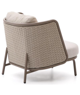 LONDON Fauteuil aluminium et corde gris tourterelle et coussins écru pour maison jardin terrasse