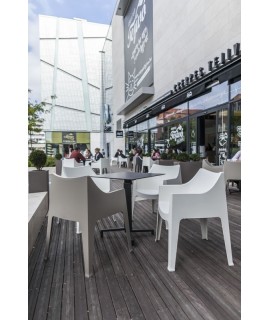 Fauteuil Coccolona en technopolymère pour usage extérieur ou intérieur, empilable, très résistant et stable, il est parfait pour un usage contract et extérieur. Avec un design innovant, c'est également le siège idéal pour les salons, les jardins, les bars, les restaurants et les collectivités, les cafés, les glaciers, les lieux en bord de mer, les hôtels, les stations balnéaires.