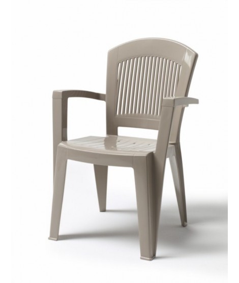 Chaise monobloc en résine avec accoudoirs pour l'extérieur, disponible en blanc, tourterelle ou vert forêt. Extrêmement résistant et facile à nettoyer. Un design fonctionnel, avec une structure monobloc désormais intemporelle dans le mobilier de jardin. Léger et empilable.