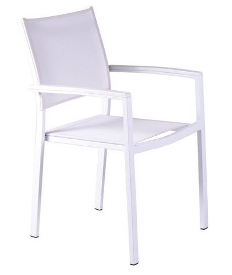 Chaise avec structure en aluminium peint en blanc ou anthracite et textilène pour siège et dossier, disponible dans les couleurs suivantes: gris tourterelle, gris ou blanc. Parfait pour les bars, cafés, résidences, restaurants, établissements riverains, hôtels, b & b, stations balnéaires. Idéal pour vos espaces extérieurs, jardin ou terrasses. Simple et raffiné. Empilables.