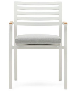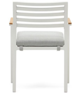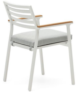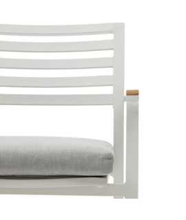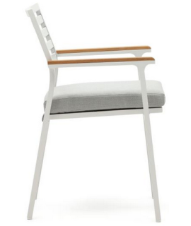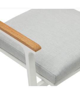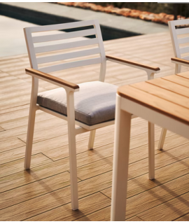 Chaise avec structure en aluminium peint en blanc et accoudoirs en teck massif, très résistante pour une utilisation en extérieur. Parfait pour les bars, cafés, résidences, restaurants, lieux riverains, hôtels, chambres d'hôtes, établissements balnéaires. Idéal pour vos espaces extérieurs, jardin ou terrasses. Simple et raffiné. Empilable.