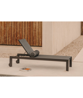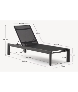 CERRY bain de soleil avec structure en aluminium et textilène gris foncé pour terrasse extérieure jardin