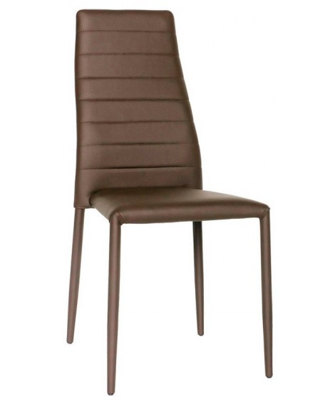 Belle et élégante chaise rembourrée entièrement recouverte de cuir écologique disponible en différentes couleurs. De la ligne particulière avec un travail en relief au dos, ce qui lui confère un design unique et raffiné. Très confortable avec dossier haut et anatomique et support lombaire. Empilable.