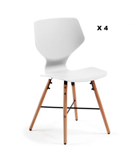 Avec assise en polypropylène blanc façonné, pieds en bois de hêtre massif avec tirants en métal noir.