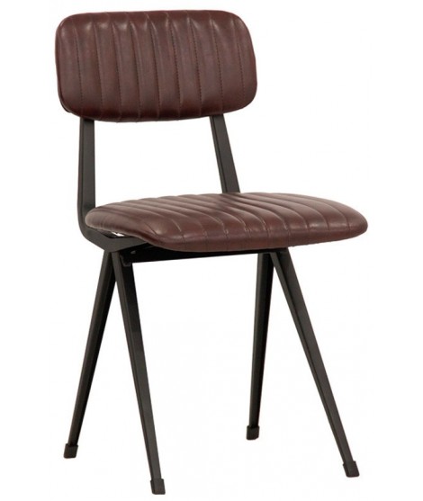 Chaise confortable avec dossier rembourré et assise recouverte de cuir écologique brun doux et structure en métal peint noir, avec un design unique et captivant, elle convient à tout type de mobilier. La linéarité, la simplicité et l'élégance infinie rendent cette chaise aimable et accueillante. Convient pour la maison ou le contrat, grâce à la très haute résistance structurelle.