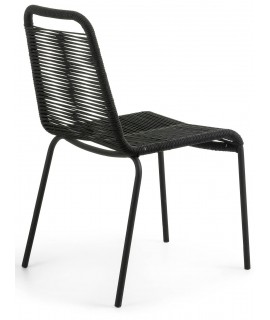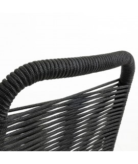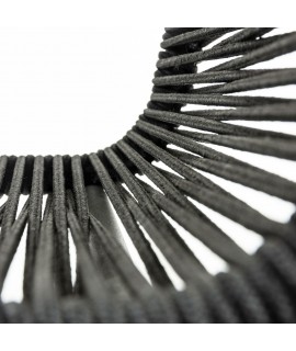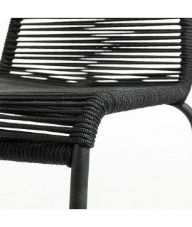 Chaise simple et enchanteresse avec structure en métal peint en époxy noir, assise et dossier en corde de polyester, résistante et résistante, avec un agréable travail horizontal. Disponible en couleurs: sable ou noir. Convient pour une utilisation en extérieur. Vous trouverez ci-dessous le tabouret assorti. Toutes les mesures sur la photo de la fiche technique en faisant défiler avec la flèche dans les photos.