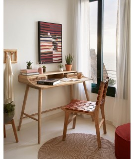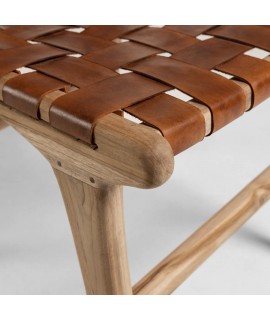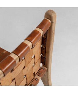 Belle chaise particulière, confortable avec des sangles en cuir marron tissées à la main pour le siège et le dossier et une structure en bois massif. Un véritable chef-d'œuvre qui donnera du caractère à votre environnement. Sur ACCESSOIRES toute la ligne pour correspondre.