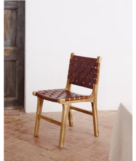 MARIKA Chaise vintage en bois massif et lanières de cuir marron