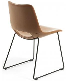 Chaise Fabulous avec pieds en acier peint noir par pulvérisation, rembourré et recouvert de cuir écologique dans les couleurs: vert ou marron. Toutes les mesures sur la photo de la fiche technique en faisant défiler avec la flèche dans les photos.