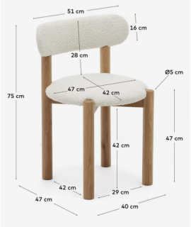 Cette magnifique chaise est belle et élégante. Fabriqué avec une structure en bois de chêne massif avec une finition naturelle, une assise et un dossier rembourrés et un revêtement en tissu shearling doux et tendance. Enchanteur et raffiné, vous disposez de toute la tranquillité d'une assise confortable, agréable et reposante. Ligne merveilleuse et confort extrême.