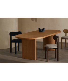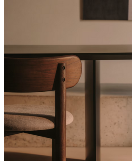 DION chaise en chêne massif avec finition naturelle et assise en chenille beige